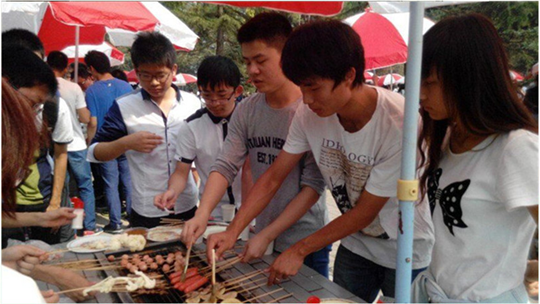 中午十一点,按照计划同学们开始烧烤。同学们将平时学到的看到的烧烤技巧用了个遍。大家互相帮忙,配合默契,不一会儿美味的食物就呈现在大家眼前。