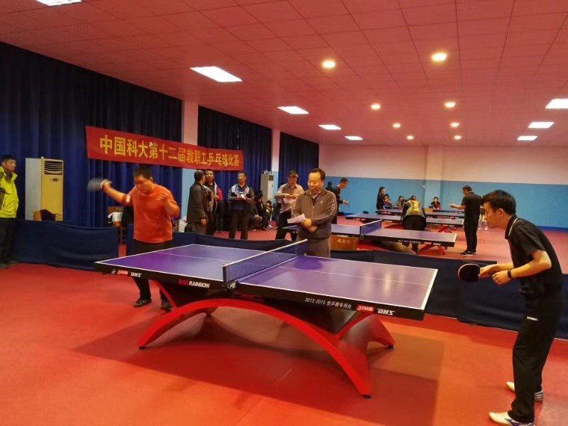 十月份,校工会下发了《关于举办中国科大第十二届教职工乒乓球比赛的通知》,数学院分工会接通知后认真准备,积极组队报名参加比赛。由于比赛日期与本院相关活动有所冲突,经过协调和动员,数学院组成了由李思敏、刘璞和宣本金三位老师组成的代表队,参加男子团体赛。赛前,数学院代表队队员利用业余时间,加强训练,进一步提高乒乓球球技,熟悉比赛规则和赛程安排。