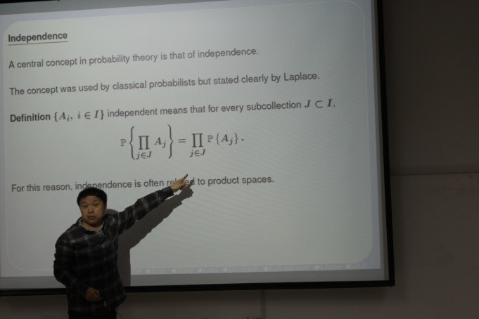 报告会上,徐佩教授首先简明扼要地回顾了概率论的定义及发展历史。顾名思义,概率论是研究概率的数学分支,所以我们首先要澄清概率是什么,它是否客观存在。然后,徐佩教授重点向大家说明如何将概率这样的模糊概念转化成为一门严格的数学科学,并简洁地介绍概率论中的重要概念和研究对象 (Markov 过程, 鞅, Brown 运动等)与研究方法以及概率论中的几个重要定理 (大数定理,中心极限定理,重对数定理,鞅收敛定理等)。最后,徐佩教授深入浅出地向大家讲述了如何在纯粹数学(分析,偏微分方程,几何,代数,数论)和应用科学(物理,统计,经济,金融,甚至体育)中应用概率论。