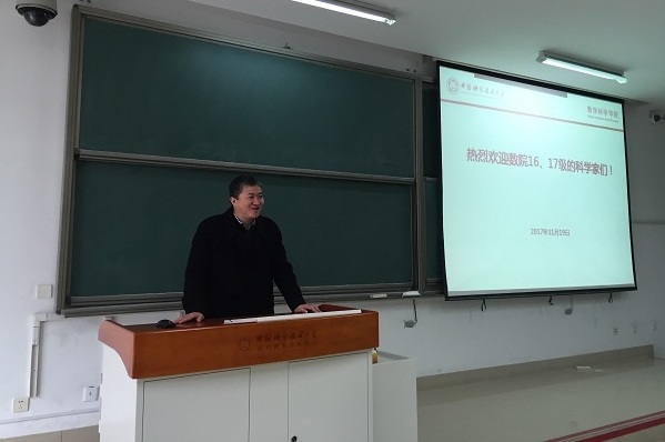 首先,李嘉禹对“科学家”们的到来表示诚挚的欢迎。他从习近平总书记视察中国科大和双一流建设讲起,介绍了数学院的学科建设与学生培养情况。并就学生家长们关心的学生出国及就业前景,从师资、政策、学工队伍建设等方面谈到了数院学生能够获得的学习资源和交流平台,为家长们提供了总体参考。