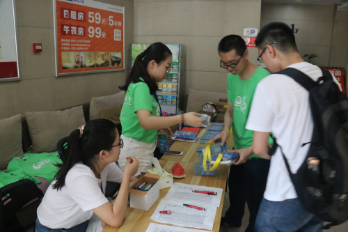 7月16日上午9点,夏令营志愿者们早早地在东区北门外的城市之家酒店一楼集合,紧锣密鼓地做着最后的准备,迎接着营员的到来。无微不至的服务和灿烂温暖的笑容为每一名营员的夏令营之旅添上了绚丽的一笔!各营员纷纷表示,中国科大数学学院的夏令营工作非常用心,收到的科大纪念书包、笔记本等物资十分丰富,让人非常感动。营员刘倩倩称赞道:“到科大的那一天,更是真切感受到了科大的用心,从日用品到住宿,没有科大想不到为我们准备的。这让我们觉得科大并不是只是希望招揽人才,更是希望我们这几天过得舒适自在。”