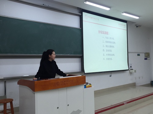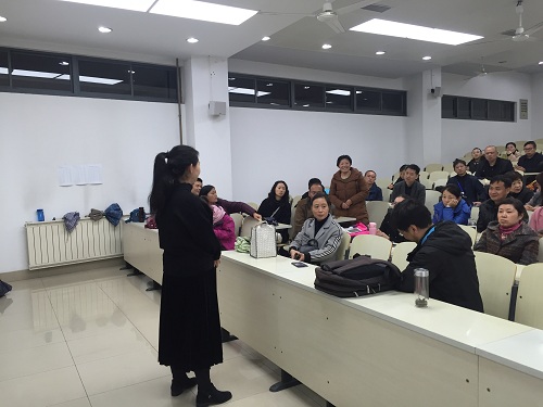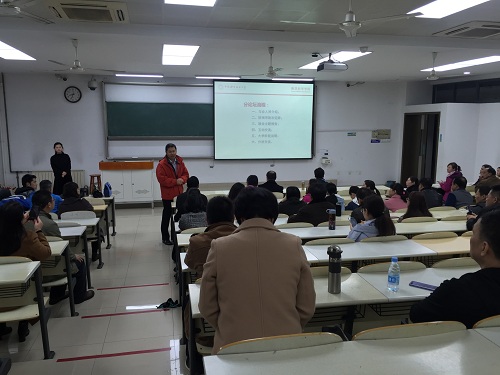 首先,邓建松对“科学家”们的到来表示诚挚的欢迎。他大致介绍了数学院学生培养情况,特别针对华班家长关心的问题,说明了当前华班的管理模式。邓建松希望家长可以做好建议者,对学院的教学、管理等方面提出宝贵意见建议;希望家长做好督促者,科大学生的学业压力相对较大,需要家长的重视和督促;希望家长做好旁观者,避免事事第一线,该怎么做交给学生。最后,他提出,希望学院和家长能加强交流,有什么建议相互沟通,学院会争取在学生管理方面做的更好。