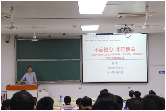 会上,黄文同志重点布置了数学院“不忘初心,牢记使命”主题教育的整体工作计划。他号召学院全体党员要立足岗位,扎实做好“不忘初心、牢记使命”主题教育工作,认真开展学习研讨,深入基层调查研究,对照目标检视问题,逐项抓好整改落实工作。