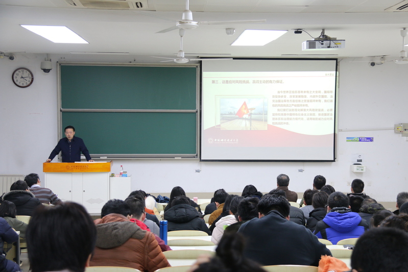 褚家如同志首先传达了十九届四中全会的会议背景及主要议程,从国内和国际背景阐明十九届四中全会的历史地位及深远影响。带领全体与会师生从四大板块系统学习了《中共中央关于坚持和完善中国特色社会主义制度、推进国家治理体系和治理能力现代化若干重大问题的决定》,特别详述了中国特色社会主义制度和国家治理体系的十三方面“显著优势”以及十三个“坚持和完善”。他还结合中共0029cc金沙贵宾会第十二次代表大会上提出的“潜心立德树人、执着攻关创新”两大核心任务,为与会师生进行了深入地解读,希望大家深入学习贯彻十九届四中全会精神,更加紧密团结在以习近平同志为核心的党中央周围,不忘初心、牢记使命,坚定信心,保持定力,锐意进取,开拓创新,坚持和完善中国特色社会主义制度、推进国家治理体系和治理能力现代化,以一流的管理水平和现代化的治理体系支撑中国特色、科大风格、世界一流大学建设!