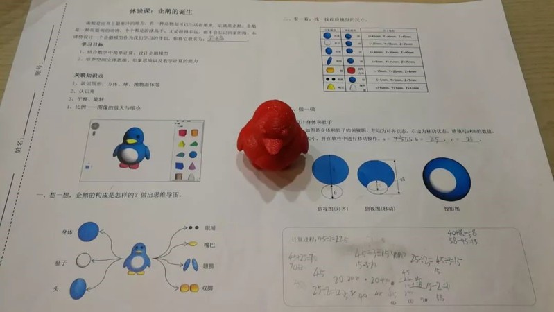 特别是在“数学之用”环节的体验中,孩子们借助ABC3D学习辅助建模软件和数学计算手段设计出一个企鹅,见识到了不一样的数学应用题,运用所学知识认真地计算,创造出心目中的企鹅,初步体会到如何应用数学知识形成创造力。根据二维图形设计三维模型对很多学生是不小的挑战,但令人欣慰的是,大部分学生都战胜了建模过程中遇到的困难,最终创造出自己的个性化企鹅。