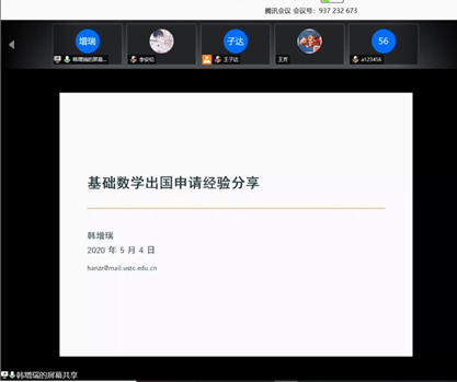 第一场是由基础数学的韩增瑞学长(罗格斯大学 RU 代数几何phd)带来的经验分享。学长先用自己的申请情况作为引入,详细的为我们介绍了申请国外学校所要做的前期准备,如何选择学校和网络申报所要准备的材料,并给出了一些相网站,相关的注意事项和中肯的建议。