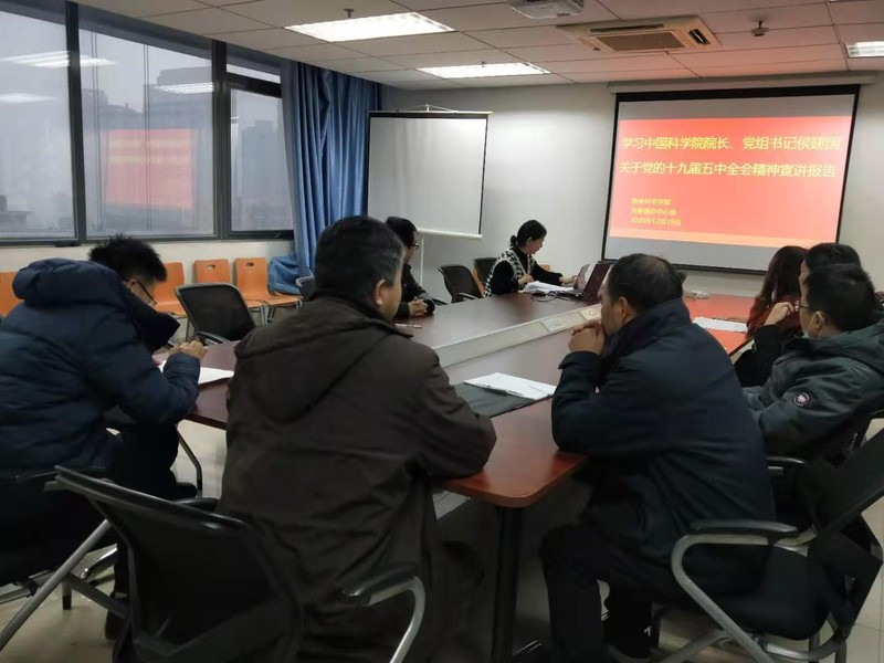 党委书记、副院长黄文首先传达了中国科学院院长、党组书记侯建国关于党的十九届五中全会精神宣讲报告的会议精神,党的十九届五中全会是在全面建成小康社会胜利在望、全面建设社会主义现代化国家新征程即将开启的重要历史时刻召开的一次十分重要的会议。全会审议通过的《建议》,是开启全面建设社会主义现代化国家新征程、向第二个百年奋斗目标进军的纲领性文件,是今后5年乃至更长时期我国经济社会发展的行动指南,具有重大而深远的意义。