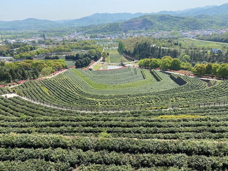 老师们走在全国最美茶园之一--“九·一六”茶园里的十六级梯田上,一陇陇春茶翠绿欲滴,与万余株盛开的映山红交相辉映,如诗如画,美不胜收……