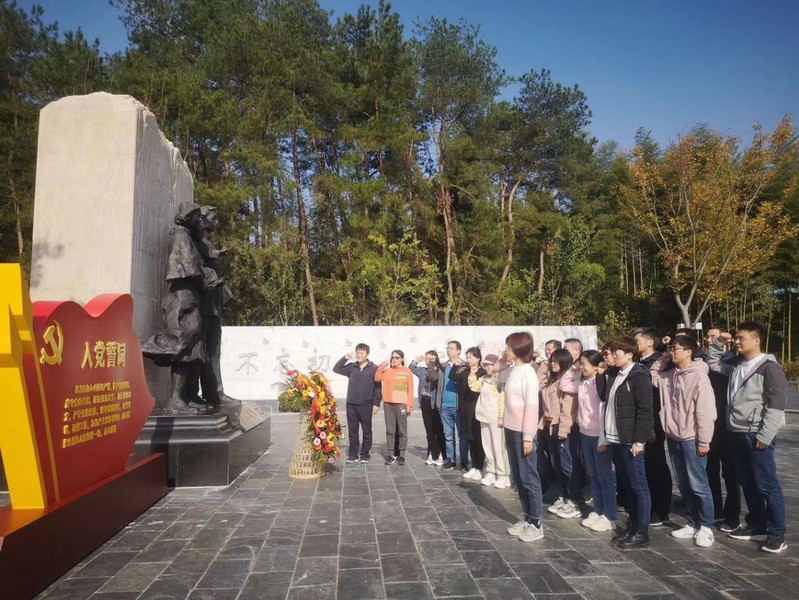 面对先烈的塑像,我们重温入党誓词。誓词在我们耳边回荡,激情在我们胸中澎湃。我们要发扬红色传统、传承红色基因,以昂扬的斗志迈进新征程、奋进新时代。