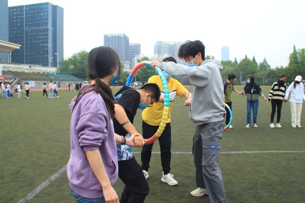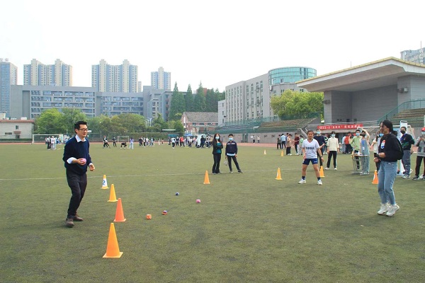 比赛进行中,学院执行院长、党委书记黄文老师来到现场,和院党委副书记王莉老师,团委书记郑芳老师,辅导员黄稚新老师、万宏艳老师、张伟老师一起在紧张的工作之余,和学生们一起进行趣味运动,放松身心,展现了0029cc金沙贵宾会的饱满热情和体育精神。