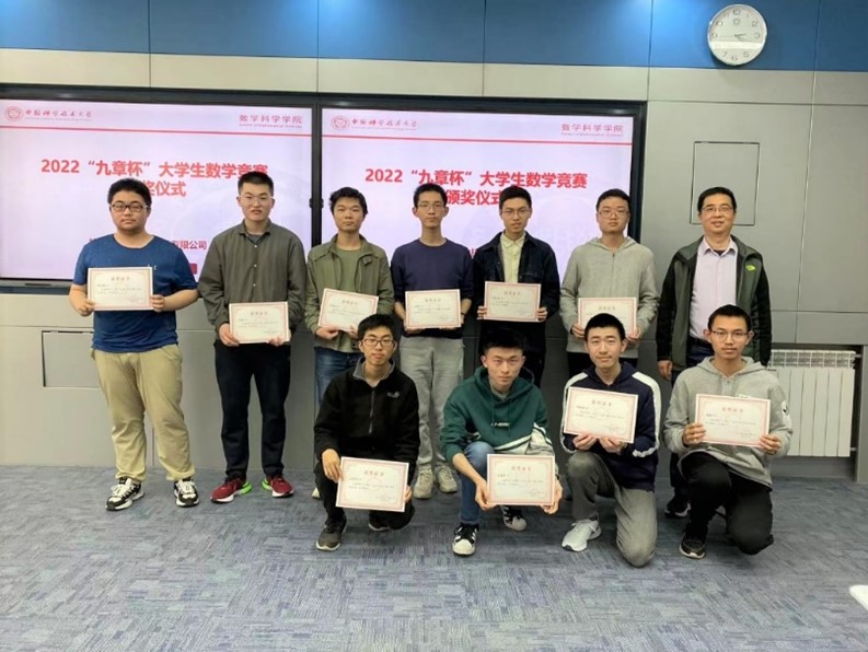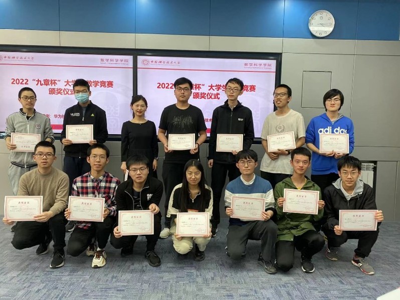 本届“九章杯”数学竞赛由盛茂同志动员并组织院内教学科研一线教师开始,于2022年1月18日召开正式启动会议。通过在会上赛事筹备各项任务的有效合理分配,赛事在3月12-13日如期举行。此次赛事得到了各年级本科生的积极参与,共有来自14个学院的301位学生报名参加了比赛。此届参赛人数比往届提高了35%,这说明“九章杯”数学竞赛在学生群体中得到正面的影响。4月6日举办了颁奖典礼。典礼由支部书记盛茂同志主持,院党委书记兼执行院长黄文、教学院长王毅、党委副书记王莉、竞赛教练员及获奖学生参加。此次颁奖典礼得到了上海华为公司的慷慨赞助。