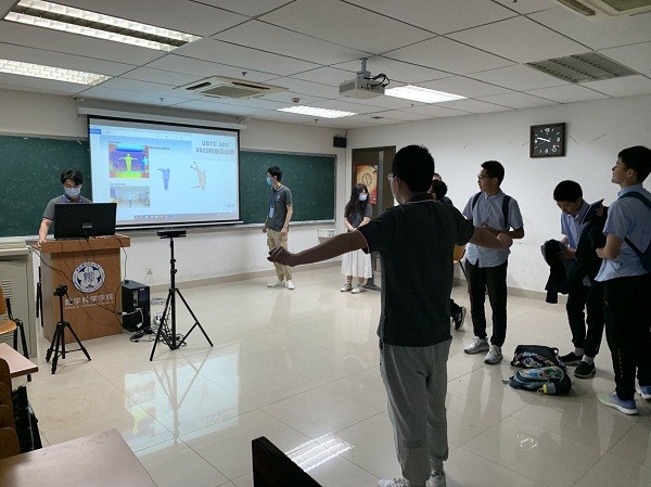 数学科学科普点设在科大东区管理科研楼12楼和13楼,共安排了六个体验类的科普项目。12楼第一个科普项目是高精度三维人体数字化。体验者只要站在相机前,随意转动一圈,计算机就会在很短的时间内捕捉并分析出当前的人体形状,然后就会即时显示包括衣服和脸部在内的三维人体,它还能捕捉出人体的表情和动作,呈现在虚拟形象上。360°全方位立体扫描出的3D人像惟妙惟肖,还能做各种动作,让参观者都大呼神奇。