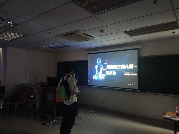 此外现场还给大家展示了数字校园的重建成果。三维数字校园依据真实校园环境中各物体的真实尺寸建造建筑物、地形、环境等模型,让大家在漫游中体验到校园的真实风光。观众可以根据自己的喜好在校园环境中进行自由漫游。
