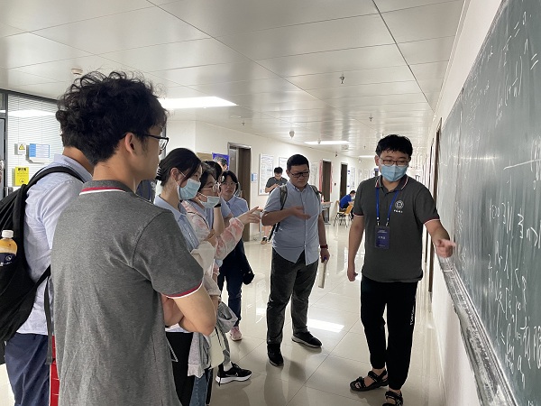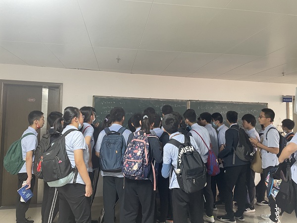12楼的走廊上还有特别的一幕,志愿者吴天针对不同年级的学生准备了相应的数学竞赛题目,每次讲解都吸引了众多同学的围观。不但让同学们等待的时间不无聊,也让他们感受到数学的乐趣。真正做到了寓教于乐。