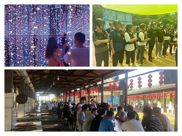 看着大家洋溢着纯真的笑容,想必也是为吃到自己亲手做的菜而感到兴奋吧!紧接着下午就是我们活动的第二部分——自由活动,在这里有着各种各样的游玩项目:真人CS、奇幻魔镜、玻璃桥、桌游等,大家都积极的参与在各自喜欢的项目里,尽情的释放着自己的热情。
