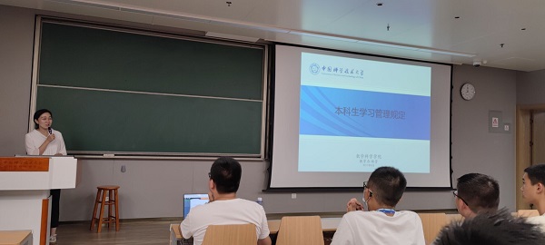 她首先介绍了纪律管理规定,分为新生入学、开学注册、请假与考核三个部分;其次介绍了课程修读中培养方案、课程学分比例、选修规定、个性化修读、学业指导中心、学习量要求、免修、免听、放弃课程修读、已及格课程重修等内容;接下来介绍的课程考核,包括考核种类和方式、缓考规定、开学补考三个部分;然后介绍的成绩计算,包括成绩衡量方式、课程评定方式、成绩记载形式、放弃课程成绩、重修及补考成绩记载、成绩单(学业成绩档案、成绩单的办理)几个部分;接着介绍了学籍异动,包括转行政院系/调整修读专业、休学和复学、学习警示、解除警示、退学等几部分,以及毕业、结业和肄业;最后她简要提及了上课时间、体育课、大研和大创的相关规定,并推荐了程艺老师《数学基础宣讲》。