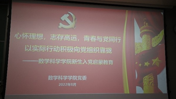 接下来,由年问问老师带来以“心存理想、志存高远、青春与党同行、以实际行动积极向党组织靠拢”为主题的新生入党启蒙教育。年问问老师给阐述了大学生要选择加入中国共产党的重要性,用PPT和轻松快乐的视频简述了党员发展工作流程,展示了入党申请书的标准格式和基本写法和介绍了学院本科党组织相关情况。
