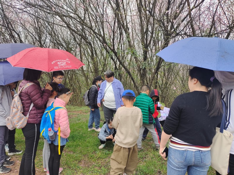 3月11日上午8:30,大巴准时开动,大家已经迫不及待赴这场春天之约。经过一个半小时的车程,终于抵达小团山香草农庄。一进大门,就看见几株红叶李亭亭玉立于道旁,一树一树的花开,温柔烂漫,低头啄食的鸡和几只昂头迎客的大鹅在落英缤纷中踱步,大家纷纷拍照留影,记录春光胜景。大家进入农庄的会议室,一边观看视频《诗经与植物》,一边品香草茶,好不惬意!看完视频接下来就是实战,农场负责人领着大家开始在农场里找寻诗经里的植物,天空落下微微雨点,大家穿梭于桃红李白之间。寻毕,大家前往农庄餐厅就餐。